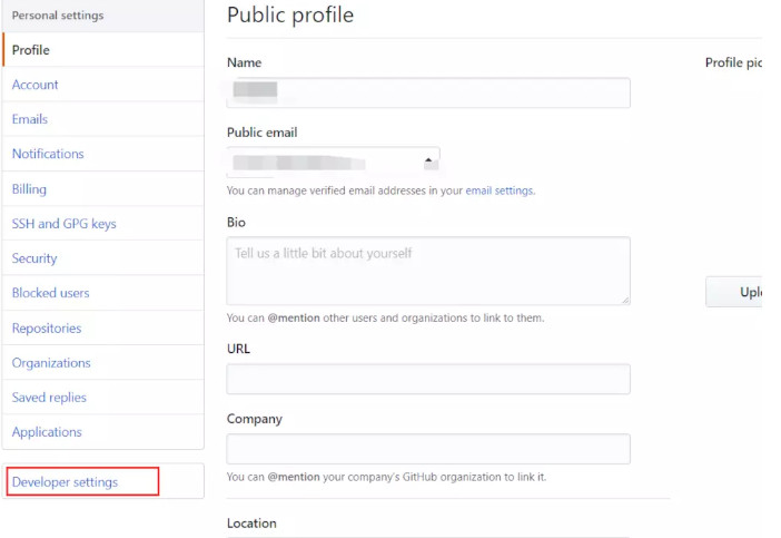 进入页面后,点击"Developer settings"按钮